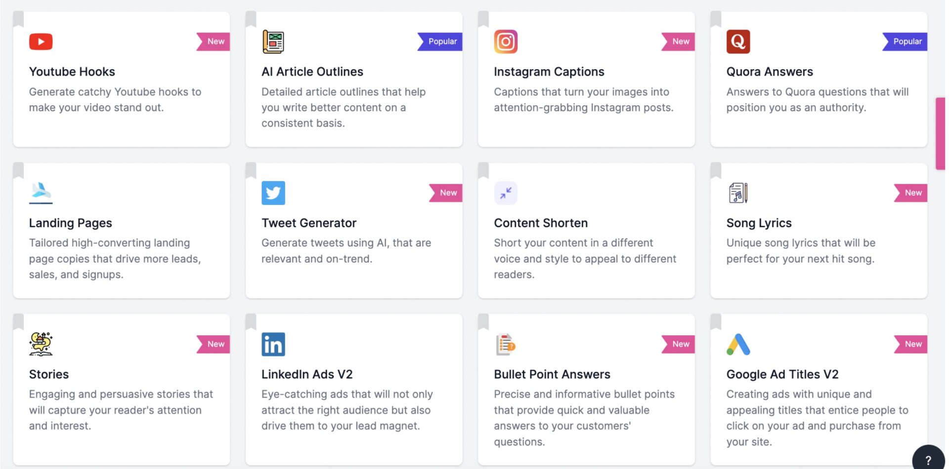 También Writesonic tiene otras utilidades, para que puedas generar en sólamente algunos segundos: