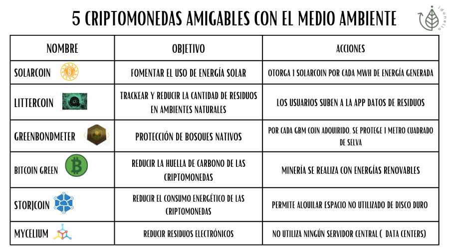 criptomonedas amigables con el medio ambiente - tabla resumen